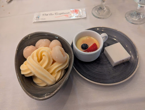 The food was ok, but you are competing with the guests at the hotel for food at the hotel's restaurant. Some food ran out and the sushi station was not manned part of the time. There was a huge line for the desserts just before the show was starting, so it was not possible to get any dessert, especially since so many people had to rush dinner. The included package drink had the option of cocktail, but it was watered down.