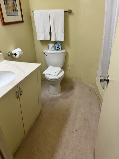 The bathroom was very dated and laminate flooring coming apart. The shower itself was very small. It had good pressure and always hot water though. The bathroom had a huge counter and lots of room and a closet to hand your clothes. They did have a hair dryer.