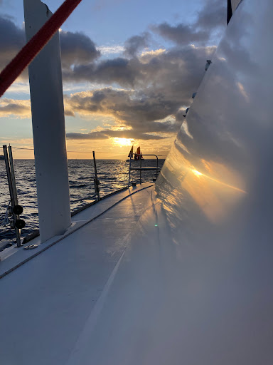 I just returned from a work trip, was ready for a beer and TV⌠when I received an invitation to a sailing Birthday event. The moment I removed my shoes and step onto the catamaran, it was like going to a spa. I was greeted with cucumber water and given the run of the ship đ. After everyone was aboard and the safety meeting finished, the champagne came out with promises of food upon anchoring⌠already feeling the long week being rocked away on our way to anchor. I relaxed on the foredeck. We were constantly checked on in case of any needs or a refill. Once at anchor, we were give a tour of the Charcuterie board and significant other wonderful edibles, including homemade chips, wontons, flat bread, and the most amazing tomato jam. While stopped, we had a CHANCE TO SWIM in the deep blue, which is NOT OFFERED BY MOST other tours. After the swim, sails went up and we enjoyed the sunsetâŚwe were back at dock before it was too dark.