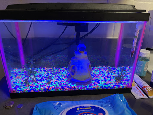 I went in looking for some companion fish for my Betta - I had done my research and was specifically looking for cardinal or neon tetras. There were no cardinals, so I was going to by about ten neons for my fifteen gallon tank. The employee working at the time actively discouraged me from getting tetras, even though I told him I had done my research and my tank was prepped for them. He pointed me to some more 'hardy' fish, specifically some white cloud minnows. (though petco apparently has some fancy name for them, 24k white gold whatever) I really did like the look of the minnows, they were a very pretty off-white gold, and I thought they would compliment my betta's coloring very well.