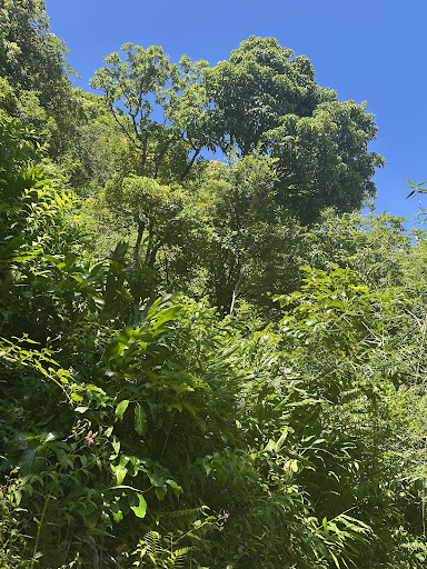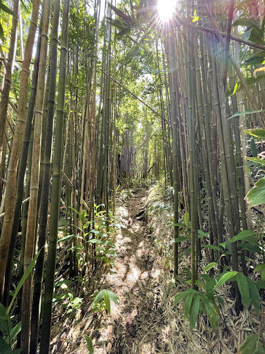 this is a nice, quick little hike. be expecting some mud on this trail, and it isn't about getting to the top so take your time on the path. we stood and listened to the breeze in the bamboo section, it was super peaceful and soothing. it was delightful to notice all the different plants that grow at different parts of the path, the ginger flowers were smelling delish on this day. near the upper middle part of the hike, there's a view down to the ocean that is gorgeous. give it a try! not too hard, but it does...