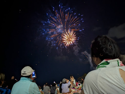 The beach is a great viewing spot, though crowded. The turf area is also nice, but you need to set up a little early to get a prime spot. Definitely worth seeing if you happen to be in the area, but very short if you're driving out especially to see it unless you just really like fireworks or want to see them...