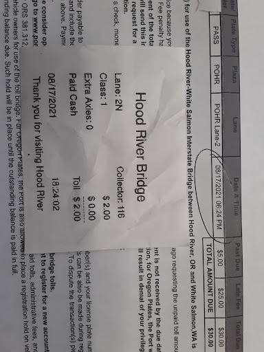 After Christina refused to waive my late fee, she then tried to offer me a "discount" to sign up for a BreezeBy account. Which isn't a discount at all, it's another scam where you have to upload a minimum of $20 to get a 50% "discount" on each crossing. But you can never have less than $10 on your account and must always reload in $10 increments. This is such a waste of money for visitors who don't live near Hood River, don't even bother. I will be avoiding this bridge from now on and am looking forward to the class action lawsuit. I've never seen so many negative Google reviews, especially in the span of...