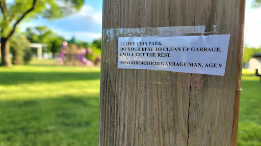 Read moreWe met a terrific young man the other day cleaning up after someone left a bit of a mess in the pavillion. I love his attitude and the little signs he made!