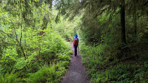 Read moreThis is a trail that runs through a rainforest. There are also trails that run through a resort type area called the quinalt lodge, located on the lake. The southern shore of Lake Quinault has around 15 miles of public trails that you can roam. At times, the thickness of the brush and trees can blot out the sun, making it look like dusk in the middle of the day. As you walk there will be trees 12 feet wide along the pathway, and the stumps of their remnants remain in eyesight at all times, creating what seem like walls along trails. There are several waterfalls and bridges that cross the creeks that allow you to view them. The lake is beautiful, although there are better views of it from the mountainous area at its northwestern end. The world's largest sutka spruce tree sits at the end of one of the trail heads, although a map located at the parking area shows it on the northwestern side...