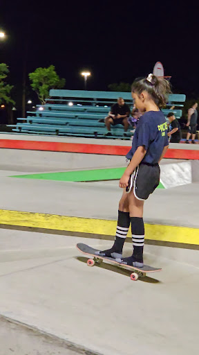 The new mini skate park is fun to rollersk8 as a beginner!I recommend Showing up early in the AM when kids are in school. Ideal time if not your chances of trying to get a good sess in is limited. A swarm of kids sk8 here & its not worth the stop if your a beginner due to the lack of space. Repaved walking trail is smooth & also great to roll on. Locals are friendly & will stop to ask if alright if you bail out. Multiple bathroom facilities is an added plus,2 porter pottys & an actual small facility...