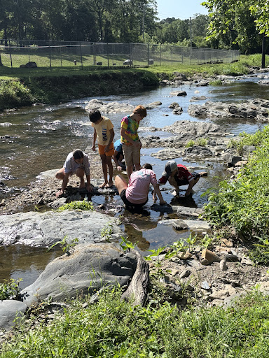 There's a fenced baseball field, picnic tables, fenced basketball court, pavilion for group events, bathroom, small playground, fenced small toddler playground with shade cover, a creek to play in, and a couple bench swings. The park is tucked back away from the mainstream traffic areas, so it's pretty quiet. It would be better if there was shade over kids playground, and if that area had more play equipment. There's not enough for school age kids to play on if there are several kids...need more swings, monkey bars, etc. There's plenty of space for kids to run and...