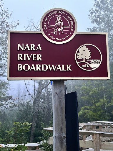 Miles of hiking and biking trails, which are used for skiing and snowshoeing in the winter. There is also a sledding hill. Many different trail lengths and ability levels. Dogs are allowed, bags are supplied so you can clean up after yours. The Humane Society is also in the park, so you will often see shelter dogs being walked on the trails. The Nara trails are free to use, but some of them cross over, or are adjacent to, the Michigan Tech trail system. If you use any part of the Michigan Tech trails, you are supposed to purchase a day pass at the self serve station in the parking lot. There is a nice picnic table near the parking lot, and others along the trails. Restrooms, showers, lockers and a fireplace are in the Interpretive Center. The website says the center is open daily 8am to 8pm, but we were there on a Sunday afternoon, and...