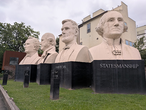 The park is operated by Harris County and these artworks by sculptor David Adickes were added in 2012. He titles them, "A Tribute to American Statesmanship."