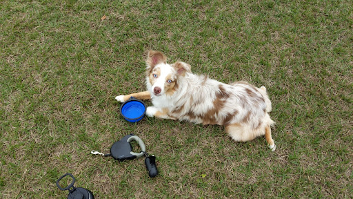 D- D is for Dog Walking. The park has a ton of grass and a large walking path that makes it a great location to walk your pooch!