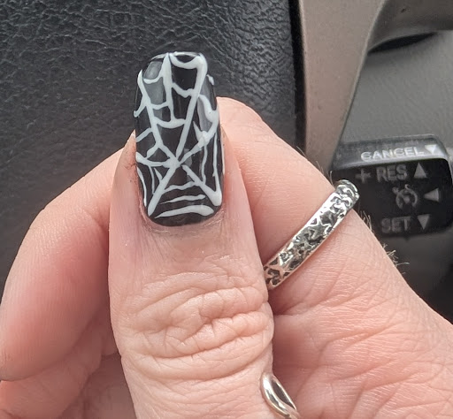 I didn't want gel at first but figured it would offer more protection since I had one of my nails break recently. I was reassured it wouldn't be too heavy but it's quite thick and dried down with the polish pooling a bit at the tips of each nail leaving a lumpy profile. I was asked several times if I liked the application of the design and other staff asked to look at my nails when I was done and they all kept asking me if I liked it. It's obviously amateur work but I don't think I need to be the one to ask for a redo when staff are all side eyeing eachother about it. I don't REALLY care that they look like this because it's a little funny but I know other people DO care about this sort of thing. I just didnt want to stay any longer than I was.