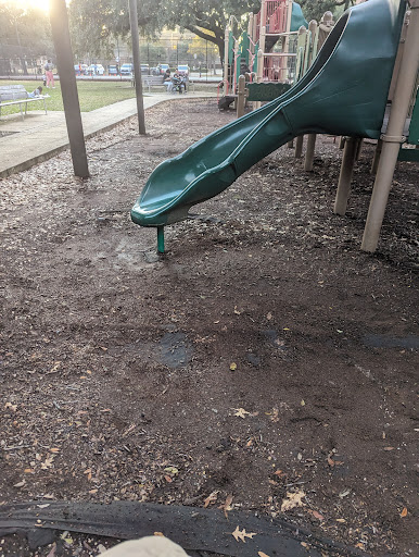 Grady Park used to be one of our favorite spots. Hang with the kids or walk around the track. I knew it may be the day after a big rain, but the playground shouldn't look like this. Rubber pellets wooden chips are saying should be there to cover the background. Plastic covering protruding from the ground children could trip and hurt themselves is really a hazard in such a nice place to go. That's been left in disarray. Houston parks and recreation, shame on you. This park sits in the galleria area on San Felipe, one of the highest tax districts in the city.