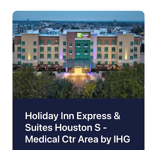 Read moreMy wife had a very early appointment at the Fondren center in Houston. Being 1.5 hours away we got a Hotel for the previous night. This 2.5 star Holiday Inn was 5 minutes away. The area around the Hotel is not the best, but it is fenced, and had security outside watching the parking lot all night. (he was even there in the drizzly rain at 5:10 am) Pros: Parking and WiFi are free, the Hotel was modern, Hotel and room was impeccably clean, AC was cold and quiet, Staff was very friendly and helpful, letting us check in 3 hours early, and changing us to a two bed room, even though I originally ordered a single King, beds were very comfortable, with both soft and firm pillows on each bed, linens were clean, and fresh, there was a microwave and mini fridge in the room, and no surcharge deposit is required at check in. Breakfast is also free, but we had to leave for our appointment before 5:30am, so we didn't get to try it. Cons: The iron they provided took a while to get hot. That is pretty much the only thing my wife fussed about, I was way beyond satisfied with our stay here. The Hotel is on Main Street, just inside the 610 loop, so there is almost zero traffic to deal with getting to the Medical complexes in Houston. I would highly recommend this Hotel for going to the Medical complexes, Reliant Stadium, Houston Zoo/Zoo Lights, or even Galleria/West side shopping, as you are away from the crowded craziness this time of year, but close enough to get there quickly. Would love to...