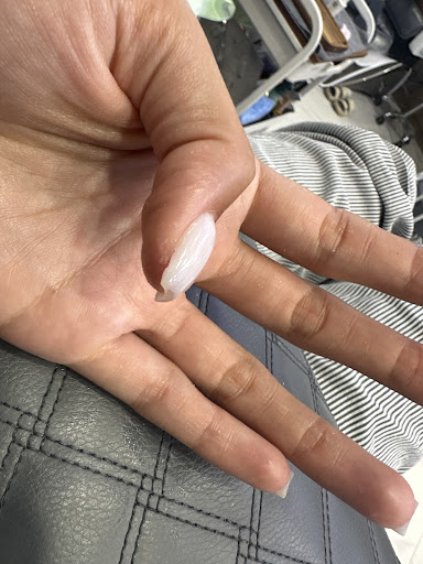 So, I’ve been here a few time and stopped for a while because each time they cut my toe. One time it got infected pretty bad I had to visit the Doctor. Anyways, it’s been over a year and I was close by and thought, I’ll try again. Big mistake! I remembered why I never wanted to return the last time. It’s so packed and busy, seems like a good thing until you are rushed to sit in a seat- which at first I didn’t think much about because I didn’t have to wait and was glad to be seen immediately. Then I asked if my son, 14, could sit next to me (he has in the past when I’ve had to take him with me) and they said no- he has to sit in a little rolling chair that they use when doing pedicures. I left that alone and was like, ok, they are busy. Then noticed other boyfriends and other men- not getting services sitting next to their significant other or family etc in a regular massage chair. But not a huge deal- didn’t say anything. Now, the lady starts to work on my hands and doesn’t ask what kind of manicure I want (they only asked for feet) she didn’t soak my nails, immediately starts to use the drill to take off my dip. I asked if I could pick a color because no one allowed me to prior nor did they ask nor did they bring me anything to choose from. Jessica (manicurist) ignored me- didn’t think anything of it because figured maybe she didn’t hear me or language barrier. I wanted a bit - and then her manager brought me the nail colors in a overstuffed box with these samples overflowing the box and I tried to get both of my hands to look through it and Jessica pulled my hand away. I said- it’s a little difficult to look with one hand. She didn’t say anything. So then I tried finding a color, felt rushed and it was color 3007 and I asked if we can match this with my toes, she said you have to find a color 800 and below- after the fact - after I asked to look with both hands and she ignored me and saw me struggling to search. She was very rude. She continued to rush through my dip manicure and left my nails very thick- I asked her, can you please make them thinner to look more natural. She backs argumentative and said- what do you mean? Be specific. I said on my nails can you make them not so chunky, the dip powder- she was like well where which one? With an attitude- then was like you have to actually tell me so I know - and I said all of them please, and if you can’t then it’s fine don’t worry about it. She started going off in Vietnamese and back and forth with the pedicurist and then the manager came- prior to the manager coming she quickly used the drill and made them thinner but cutting me multiple times in the process. Her boss came after she was ranting in Vietnamese and said is everything ok? I said I just asked for her to make them thinner and she did. I didn’t not feel like getting deeper into it because I knew I would just not come back and causing more drama with my son there was not something I felt like getting into. Then as you can see she left my hands a mess and left- didn’t say bye- never said one thing to me the whole time besides the attitude. Powder and residue still on my hands- they charged me $10 for “cuticle care” never did she do anything to my cuticles. Now Emma- who did my feet- she was a bit nicer but did ask if she hurt me, my second row on my right foot and I said yes because when she was filing she was talking with Jessica not paying attention and was filing my skin. Then- idk who does this- but raw lemon- raw- on my bare freshly shaved legs - burned like heck- no soap, lotion or anything. Just raw lemon- so odd. Again, the lady just gets up, leaves and I assume it’s over. No thank you and bye just left. It’s all so rushed and rude and it feels like a factory. All the glitz and glam is a facade over the poor quality and bad customer service. At the very least, I’d you cut someone say sorry and don’t try to hide it and don’t cut them multiple times! And you can tell discoloration on my thumbs because she rushed and didn’t do enough coats for the color so it’s...