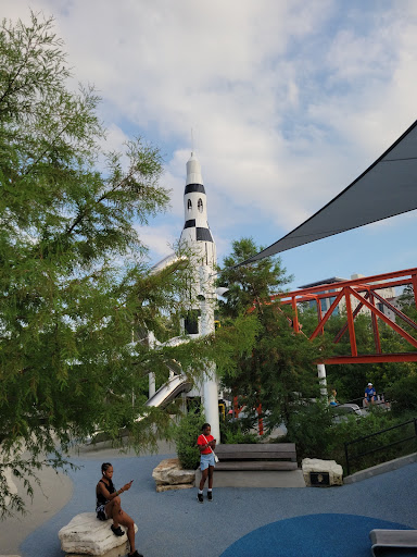 Lucky enough to have been here the day it opened. My girls love this park. Likely the best park slides 🛝 in Houston. Don't listen to the reviews that diss the old school metal design. Plastic would be just as hot.. but break down. There are canopies over every feature in all directions, so if a slide is in the sun 🌞 it won't be in a matter of an hour or so. Do the math, parents. Cmon. Use your head. Also has great restrooms when they're open, which isn't necessarily all the time. Well maintained, soft mat surface over all the play areas. Well shaded seating for adults. Love the space theme and space...