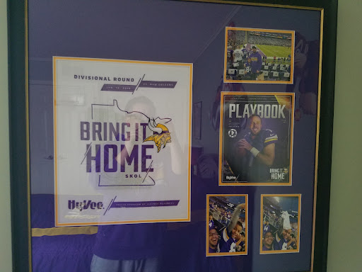 I've had 10 pieces of memorabilia framed at Kelley Gallery- and two more in the shop now, Barb in Hudson helped me design them all, and they couldn't be more gorgeous- I had another framing company (in Minneapolis) do 4 of my pieces before I wandered into Kelley Gallery in Hudson- and I've already had two re-framed, and will be getting the others redone at Kelley- they are just THAT MUCH BETTER! I wouldn't go anywhere else for framing my memorabilia- and after my trip to New York in March, I expect I'll have more...