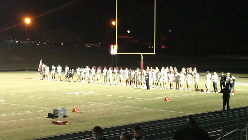 The stands are big and nicely built. The concessions stands are located right next to the stands and the volunteers are friendly enough. They have a nice little variety of things to choose from. Their parking lot is a grass field and their visitors restroom need some updating! They told our band they could not cross the railing to come in from where the buses park but instead had them climb up a hill that had a gap in it like a stream runs through when it is raining. I feel like they were putting the students more at risk by having them climb the hill than go over or under...