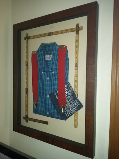 After my father passed, I brought in his favorite shirt, suspenders, handkerchief & a broken carpentry measuring tape (that he always kept in his back pocket). She put together a wonderful piece for me that hangs over my desk - and makes me smile every time I look at it.