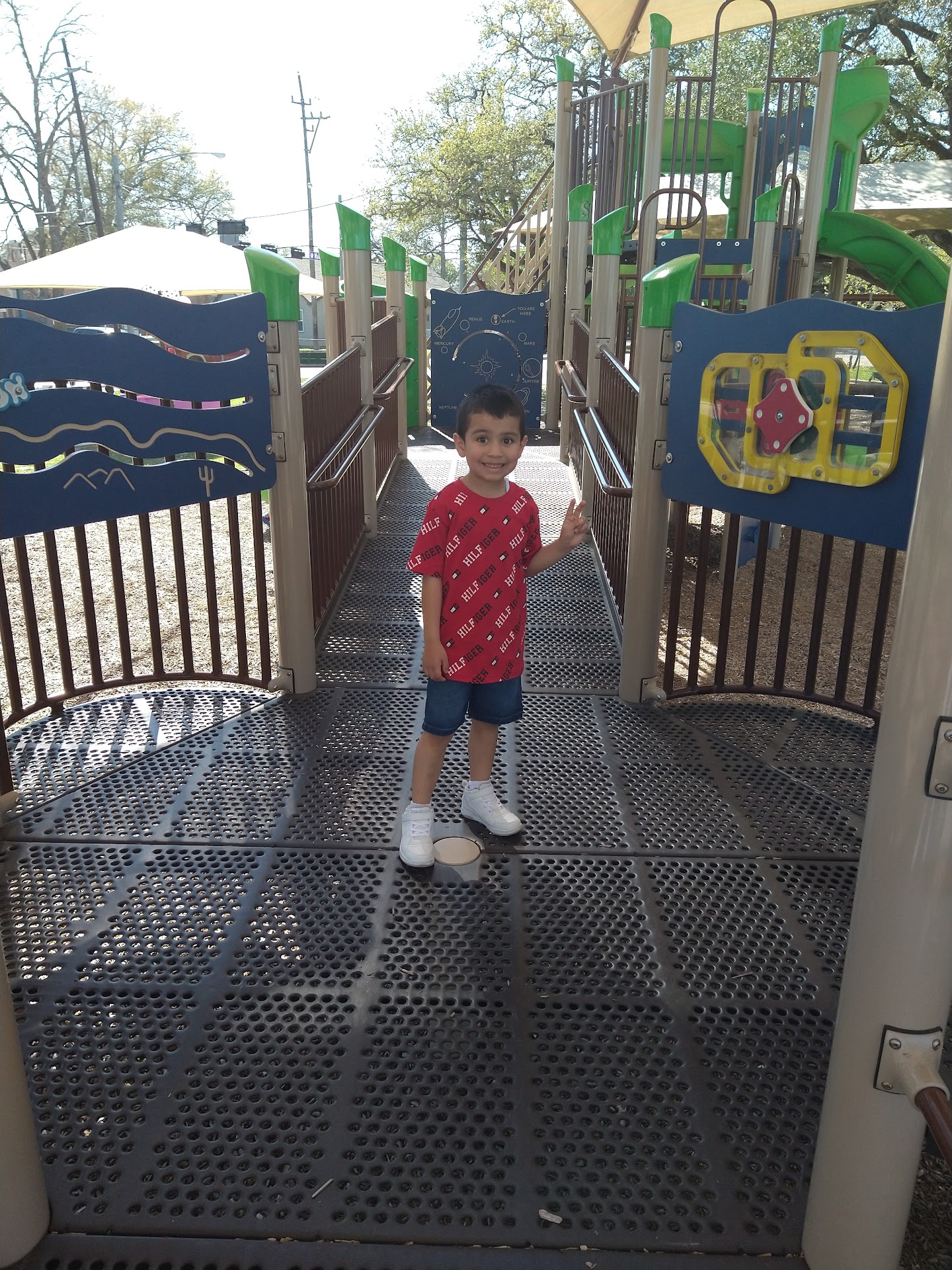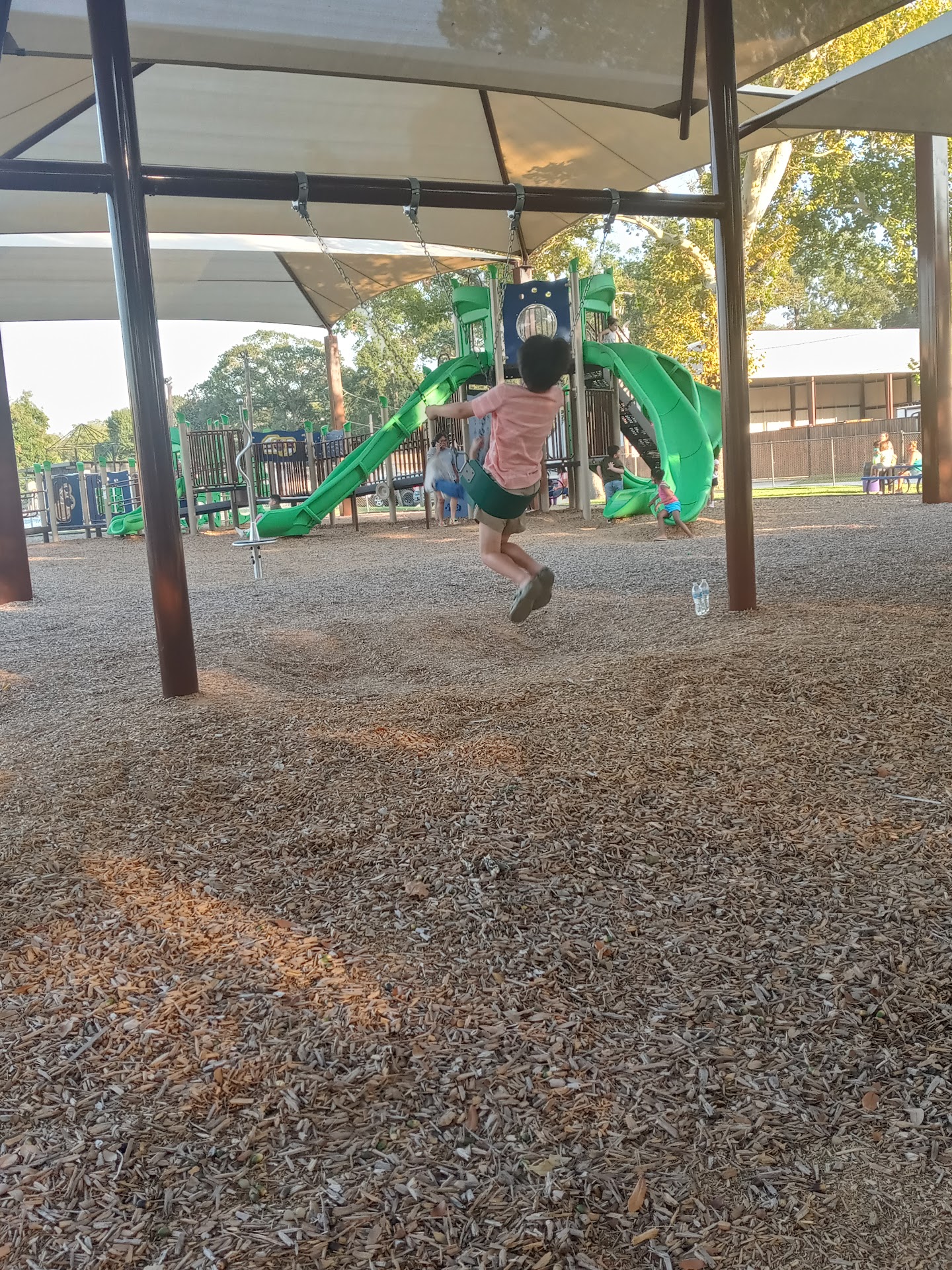 Itās a neat little playground thatās got a decent size covering over the whole thing. Didnāt see any cover when I viewed the street view and some of the pics. Thereās other pics of another playground that Iāve never seen there before. This one has 3 green slides that are pretty tall and geared towards older toddlers and kiddos. Thereās another green slide thatās much shorter for the infants and younger toddlers to play on. Thereās also a few sets of swings off to the side that have a covering over them as well. And two spots on the playground where thereās a stand that spins around n around thatās pretty cool. Itās not the most spectacular playground but kept my 3.5 toddler happy for a...