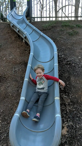 This is really a great playground... One of our favorite in Huntersville. The playground is engaging for kids of a wide age range. Also, the play is really varied... There's the main playground with an accessible Merry-go-round and Zipline, a natural play area with hillside slides, several climbers (great for younger children), and fitness trail with several stations. I like there's way access to Torrence Creek...