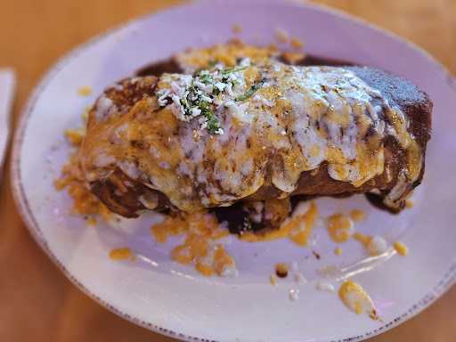 The burritos are delicious, 1 with carne asada with a tasty red sauce the other stuffed with shrimp smothered in a zesty green sauce.