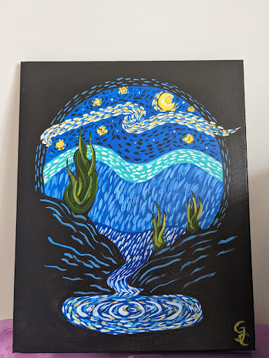 Our artist Roland was super friendly and great at explaining how to paint our Halloween themed Starry Night painting. This was only my second time painting and he made it easy to follow and embraced everyone's own style. David even stopped in after picking up his son from Basketball practice to check in to make sure we were enjoying the class. We left having had a great time and we love our paintings.