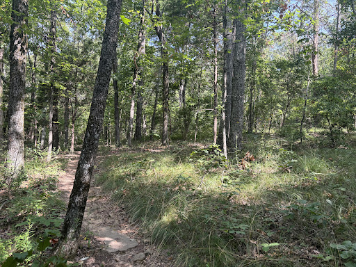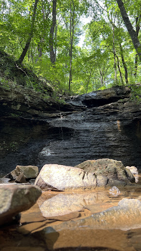 I really liked (and suggest for most people) staying on the main Alum Hollow Trail, it's the most clearly marked and 'easier' path to walk. The really neat waterfalls, creek, and caves are found on the far west side of the trail, near the intersection at Alum Hollow/OakBluff/Ranger Trail. I will say, I also did Ranger Trail on the way back, and it was pretty difficult and very poorly marked. There were countless times I was searching all over for tree markers and often there was no clear trail to follow, just random rocks and paths leading off into all random directions, trying to find your way through. I even had the AllTrails app running with GPS (I highly recommend), and had to keep pausing to find my way through. I went in July, and even though the paths are mostly shaded from the sun which is nice, there were tons of mosquitoes, and you'll be walking through and eating spider webs for the rest of the day on these 'less traveled paths'🤮. Overall, the Hollow trail was really nice, and much more friendly for the average person. There's a ton of other trails back here to hike, so have fun and don't...