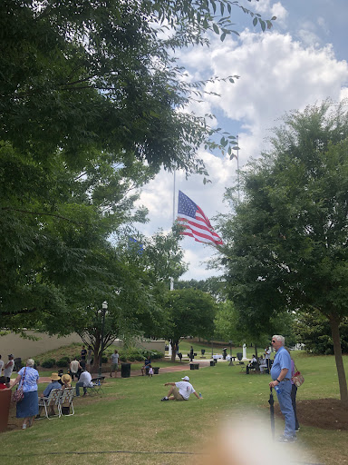 When you approach they’re the statues and plaques dedicated to those who have served our country. Behind the statues is a short walking trail that leads to the Gold Star Memorial. It’s an informative trail, with first person narrative from various wars. This area is real peaceful. A great place to talk a break and reflect. The large Alabama and USA flag are also quite the sight!