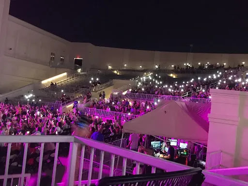 Read moreThis is a beautiful venue. However, it has some cons that could be worked on. One thing that probably can’t be changed, but I do question the design choice, is the fact that the seating for most of the venue is bench style. There are assigned seats but because it’s bench style, there isn’t any back support and it also makes it hard to have enough space for yourself. It also makes it easy for those around you to move into your space. Another con with the seating is that the seat numbers are underneath the bench so when trying to find your seat, you are having to bend so far over to see the numbers. This isn’t the worst thing ever for younger people, but that, on top of the bench style seating design, may not be the easiest thing for older people or people with arthritis, injuries, etc. to navigate. Another con is that there isn’t a ton of signage. You can find your seat relatively easily, but they could stand to have a few more signs to help you find food. And regarding the food, they serve it to you on the flimsiest plate and tray and in order to eat, you have to find a place to eat it, other than your seat, due to the lack of space and the seating style. They do have places to sit and eat around the venue which is nice, but I like the option to sit in my seat and eat, as well. I did like that they had food truck options just outside the venue though. That was a unique and great setup for an amphitheater. One thing that I understand from an environmental standpoint was the reusable cups, however I’m not sure how I feel about such a large venue reusing their cups for every show/event. I understand restaurants reuse cups but for a place that has the capacity of 8,000, I felt like that could be a little unsanitary. I’m sure they probably have strict sanitation protocols they follow but it still felt odd. One thing they definitely can easily fix is the audio. The show was amazing but the mics were so loud that at times, I felt my eardrums almost buzzing because of the sound. That’s an easy fix. Overall, the experience was great and the venue is truly the prettiest one I’ve ever seen, but there are some kinks that can definitely...