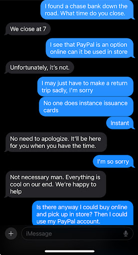 At this point I'm not happy to say the least. The next lady comes in, and she is instantly greeted with the closing countdown as well. Luckily for her the other associate offers help, and from what I heard did a good job of explaining and getting her the product she needed.