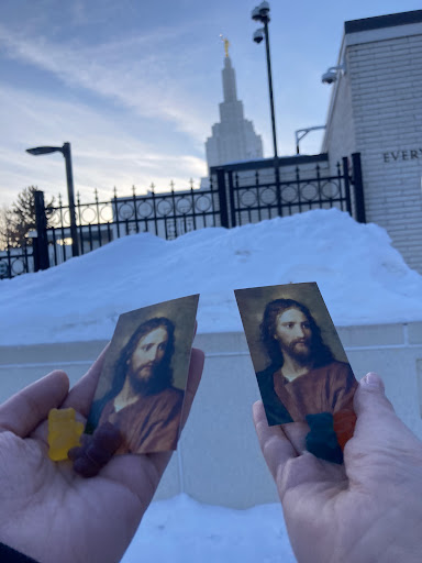 The visitor center is so cool and the people are very welcoming! Sister Buckner and Sister Young taught us about the Book of Mormon and we were given pictures of Christ to remember what we should focus on.