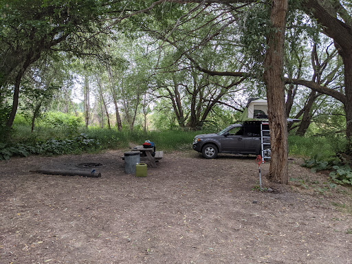We came during the week, and about 80% of the campsites were open. Most of the sites have a picnic table, a garbage can, and a water pump. Even though it's a pretty trafficked area, the campsites themselves feel secluded. The creek nearby is pretty green, so it's not great to walk in, but the area itself is beautiful and pretty close to town. Plus, we found a friend!
