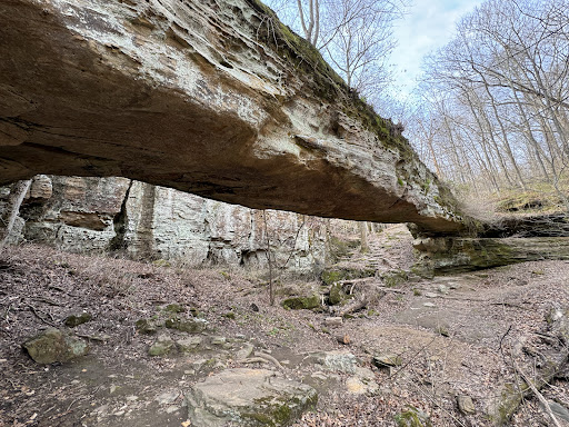 Beautiful area off a secluded road. Enjoy the gorgeous old growth pines on the way in. Trail loop is short but you can spend plenty of time wandering the creek, bluff, and around the bridge. You can both walk across the rock bridge and under it. Late March there were plenty of spring flowers (shooting stars, spring beauty, Dutchmen breeches, etc.) and fiddleheads. An elegant Red Bud coming up next to the bridge in bloom definitely catches the eye and accents the area in...