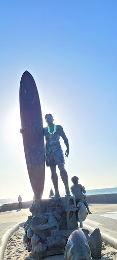 Read moreStay OUT of the OCEAN due to unsafe bacteria levels. Bronze statues tribute surfers, lifeguards, beach/surf culture and sea life of Chula Vista and San Diego. Created as a part of San Diego Port District's art program. Placed at the end of Palm Street. Two benches overlook Pacific Ocean at the panoramic wall. Walkway to the left takes you to Imperial Beach. Dogs allowed ON Leash to the left. Walkway to the right takes you to protected Estuary. NO dogs allowed in Estuary. Sadly, Imperial Beach is often heavily polluted and unsafe for all water activities due to dumping from nearby Tijuana River. Remove all belongings and trash when you visit. Recycle and garbage...