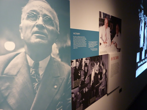 To start, there's a statue of the man outside for an excellent photo opportunity. The museum exhibits begin with a video that introduces the audience to how Truman became President. From there, one is taken on a timeline - from Harry's early life, to how he met Bess, to his days in WWI, to owning his haberdashery, to the Senate, the Vice Presidency, and the Presidency...etc. There is a lot to see. There is a replica of the Oval Office and Truman's on-site office is preserved. Harry and Bess are buried here; Margaret is interred as well. This museum has interactive components; the visitor is given a series of questions and is allowed to answer them on screens that are located throughout the exhibition.