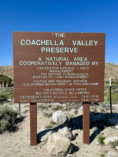 Read moreThis preserve is an amazing oasis of palm trees and a natural spring, but it has fallen into disrepair from poor maintenance. Most of the trails in the oasis are closed, or very short. There is no longer a loop trail available, and the pond area is closed. The visitor center and parking lot are also closed. You will have to park along the road, and then walk back to the oasis or trail access points. The trails around the oasis are fairly easy and flat, other than the trail that you use to climb up to the lookout. Go early in the day if you will be hiking for any length of time, and know that you will be mostly hiking in full sun. There are bathrooms available in the...
