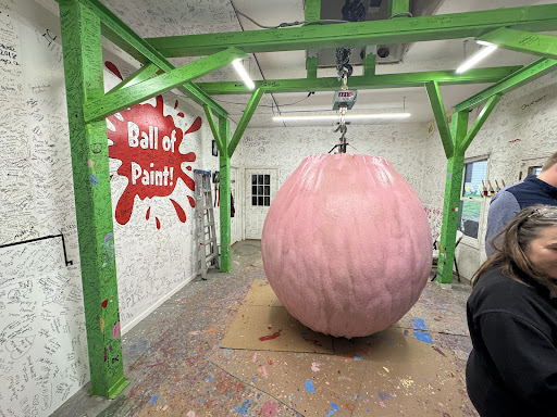 Read moreThe owners are SO sweet! Call ahead and make sure you give them a time for your arrival. We ended up hitting traffic and were delayed by almost an hour and they were so kind to allow us still. We pulled up to their location and were greeted by dozens of adorable hand painted wooden gnomes and suns in their yard. As soon as we exited our vehicle, their dog, Hailey, said hello to us (a hand painted sign assured us she was friendly lol) and let her owners know we arrived. The family opened their barn and there the HUGE ball hung from the ceiling, suspended from a steel beam. It was a sage green hue with the numbered layer we would be applying ourselves. They gave us a choice of colors and we picked pink, of course! We had a blast as a family slathering this enormous ball (more like a pumpkin shape haha,) with latex paint using rollers. The owner gave us certificates with our layer number and names and had us sign their wall, among thousands of other visitors' names and dates. I had expected to pay for our experience, but all they asked for was a donation to help house their ever-growing ball of paint. Of course, we donated and I bought one their gnomes as well! Don't miss this attraction! These folks aren't in it for the fame or fortune, just giving people a fun family experience...