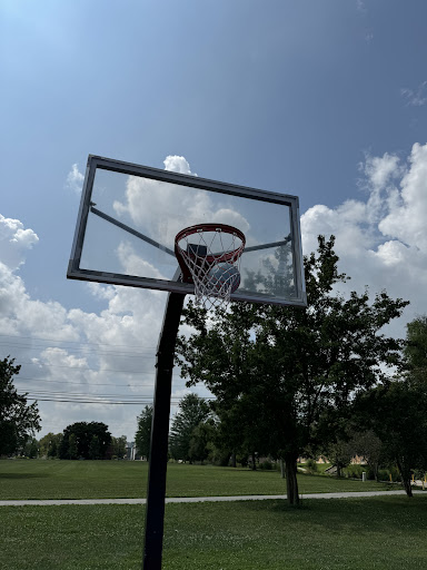 The park seemed nice but the basketball court could use some work. There is a basketball floor mat on the court which looks cool but it’s separating in the middle so it’s hard to take free throws and your ball will bounce far away if it lands onto the crack. It would be awesome if it could be snapped back together. Also, the rims were crooked and the nets held onto my ball on both hoops which was annoying. I think one of the backboards has cracks from people throwing stuff to get their ball down. Replacing the nets and straightening the rims shouldn’t be too hard.