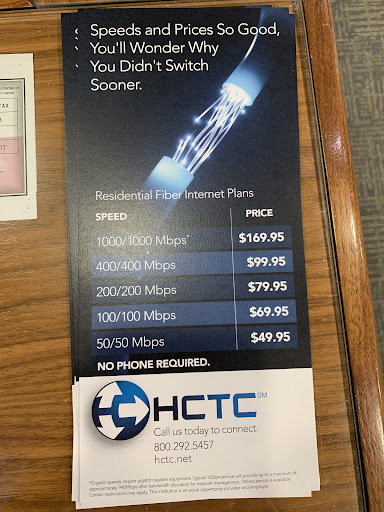 Read moreour neighborhood recently had fiber brought out here (in the hills) and i couldn't be happier with the faster internet and the lower price. the technicians installed our main house, added an extender for my home office and reprogrammed the guesthouse to receive the new service. Super professional, friendly, and made very sure everything worked before they left. we also just recently had a tree limb land on our phone/fiber line from the last storm and they were there in a few hours with a bucket truck to cut it down and the other dead limbs around it. the actual tree is on the neighbors property but hangs over ours right where the phone line is. i couldn't be happier with HCTC. Also, when i called the office a few months ago, they were so polite and friendly and answered my questions and made sure we were taken care of. great customer service. great...