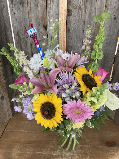 Read moreI located Rustic Flower Shop through a quick google search as needed to find a florist who could deliver with short notice as our family member's birthday fell on a Sunday- and which happened to be the following day. Thanks to Rustic Flowers' slightly extended Saturday hours (and Amber picking up when many other businesses just direct to voicemail), with less than an hour to go, she came through in a pinch. I gave little direction other than budget and general color idea. Amber personally followed up with a photo of the beautiful bouquet and receipt and confirmed once delivered which was only a short time after my order. Our loved one was surprised and thrilled and thought the bouquet was exceptional! The added touches of the ladybug in the sunflower and party blower were sweet and tasteful to the arrangement as well. Thank you so much Amber and Rustic Flower...
