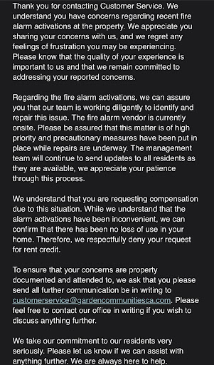 @ELEMENTS, IF YOU RESPOND TO THIS REVIEW If youâre going to respond by saying, âplease email customerservice@gardencommunitiesca.com,â DONâT. Thatâs the same email Iâve been dealing with for months. You take weeks to respond, ignore every argument Iâve made, and do NOTHING but deflect. If you want to fix this, refund the RIDICULOUS charges and take accountability for how HORRIFICALLY youâve handled this situation. Otherwise, KICK ROCKS.