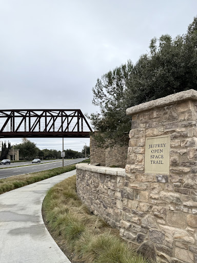 Jeffrey Open Space Trail is something to treasure for those lucky enough to live nearby. You'll find beautifully landscaped, mostly concrete bike/pedestrian trails in a park-like setting just off and along Jeffrey Road, stretching from Quail Hill in the South, all the way to Portola Parkway, in the North.