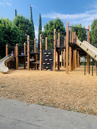 Nice park. They use wood chips around the playground and there is a large open field to play. A nice sitting area in the center and the park is small enough to see the whole thing...