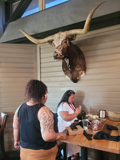 Nice Environment, the Meals are Large, Drinks were really Good. Waitress the Cowboys hat π€ Was really Sexy! I had one problem though I ordered the 18oz. Charbroiled Ribeye Steak with the Cilantro butter for like $52.00 Med. rare! I told the Guy I like it Seared on the outside Red and Warm in the Middle! They brought me a Flat Iron Steak π₯© brown Seared on a Flat grill that they said went under the Broiler! π€¦πΎββοΈππ½ββοΈπ My Wife begged me not to Send it back! So instead I figured I would write βοΈ this review so anyone else is expecting a charbroiled steak to Know in advance it's not the same kinda Charbroil that you hope for with the #Burger...