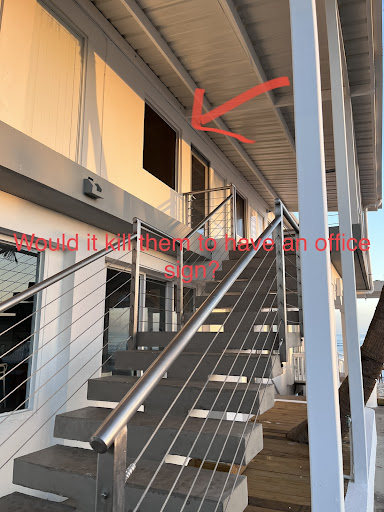 NO signage to find the office- it’s on the second floor and we were dropped by taxi, making it necessary to walk back and forth through multiple complexes carrying heavy bags looking for an office. It’s not clear where to check in. See pic, for real, in this big complex, no office sign at all and one would not expect it to be on the second floor. After walking around, back and forth for ten minutes, stumbled upon a back stairwell that had a sign in 10 pt font on the wall stating the office is on the second floor. Still not clear where to go once up there and it took more wandering around to find it, also not labeled from the inside. Additionally, very unpleasant check-in lady demanded a credit card that did not exist (we booked through a third party so the number she was seeing was connected to that site, although the booking was paid for) asked for copies of both driver’s licenses and handled our cards multiple times and ended up keeping my husband’s license and then not letting us know they had it, until: No internet, you can log in to the Wi-Fi and then nothing works anyway. When we called much later to ask if it could be re-set, they happened to mention they had the driver’s license- not sure when they were going to mention that? The Wi-Fi never worked even though a nice lady did come out to try to help. At the office, they said they could call us a cab to the airport in the morning, so no need to call an Uber. Unfortunately, when we arrived at the office at 6:30 in the morning to return keys, it was locked up tight with no one around. We had to walk way back to room, lock keys inside room while trying to call for a cab so we would not miss our flight.