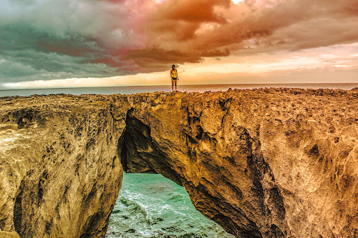 There is a really long wooden ramp across part of the beach. It's safe, but some parts are a little squeaky, and you're very high up (trees are in caverns underneath you). You may want to walk along the beach instead of the ramp shortcut. The ramp (and beach) leads to the main attraction - Pozo de Jacinto (Jacinto's Well). It's a rocky cliff that you walk up to, where the waves waaay down below crash all the way up to the top. Some days it happens consecutively; other days it's like a 15 minute wait between giant waves. You're supposed to conjure the waves by saying, "¡Jacinto, dame la vaca!" (Jacinto, give me the cow!) I say it three times, like you do with "Bloody Mary." The story is that a farmer used to pass by with his herd of cattle and had his favorite cow tied to him. Then one day that cow fell in, so the two of them plunged to their deaths together. When you say, "Jacinto, give me the cow!" Jacinto is said to make a large wave and say, "You are not taking my cow!" The people of Isabela love their...