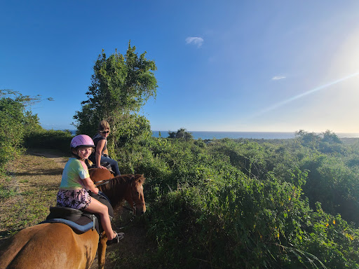 My daughter, 10 yr old granddaughter, and I booked the sunset ride with the Esperanza Riding Company. We took the ferry to Vieques and a taxi out to their facility. We were greeted warmly upon arrival (by both dog and humans:) and were given well fitting helmets (required for guests), and a place to safely store our stuff during our ride. The forms you fill out when you book had already given the staff ideas about level of experience with horses, your size and weight, so as to help determine a good equine/human match. Elizabeth did the best tutoring on the basics of, and safety in, horseback riding that my daughter and I had ever seen before a trail ride (they also called out gentle guidance during the ride if needed). My granddaughter was having second thoughts as we waited to ride and Chloe(?) came right over and talked her through her anxieties in a very sweet way. Once on the horse & with further encouragement before the start she was as happy to be on her horse as the rest of us. My daughter works in Equine medicine for the U of MN and always scrutinizes the condition and care of the horses on these trail rides. Her well trained eye found the horses to be very well cared for, content, and well trained. This is not always (or sadly, even sometimes) true on many trail rides. These horses are obviously well loved. Even the novice riders in our group enjoyed a great ride. The ride itself was incredibly beautiful, with views that couldn't be better, and a beach ride portion that added a spark of excitement to the trip. The timing for sunset made it magical. Esperanzas Riding Company has a very special place there on Vieques, and now a similar place in our hearts. Thank you ERC for this...