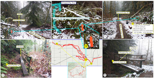 21dec2021 TUE morning 40+_F, i went to Magaret's Way Trailhead for a CCW-Loop: Magaret's Way Chybinski West Access (100 ft of Dragonfly SR900 Magaret's Way TH. (Stats: 7.1 mi Total Time: 3:42)