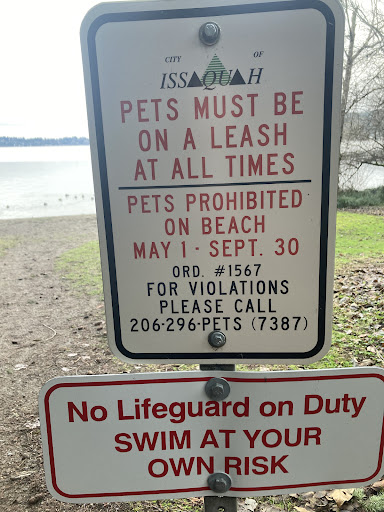 A nice gravel-ish broad pathway straight downhill to water. (MEANS Going UPHILL constant too)Sign states dogs allowed to swim Sept 30 to may 1st if I remember right took pic of sign. There’s also bark trail through the moss covered trees, just beautiful. The parking lot has 5 spaces but residential street access has street parking. A private street runs along side the park FYI. There’s a port-a-poddy only, but this is a mostly unknown public beach access besides Sammamish state park which is down a...
