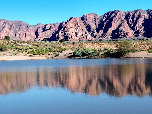 Travel west from St. George on Sunset Drive and Hwy. 91. Make a right after the Kayenta community to reach the reservoir. The reservoir has been around for a while but was recently made into a park with Sandy beaches, picnic tables, bathrooms and an outdoor shower to rinse sand off after swimming. Spectacular views of the reservoir, red cliffs reflecting in the water and hiking and walking trails..a...